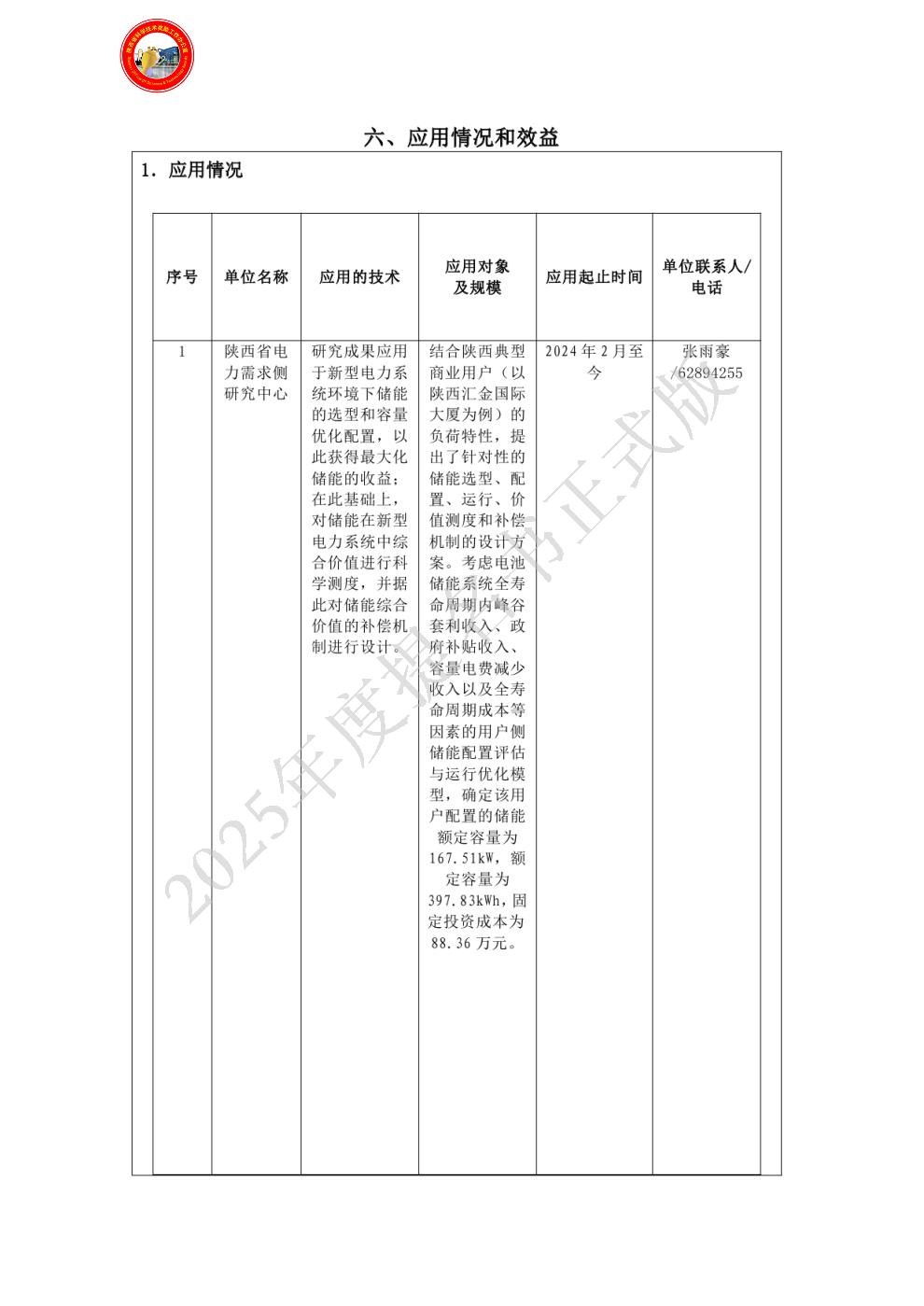 | 主要完成单位及创新推广贡献: | - 单位名称:国网陕西省电力有限公司经济技术研究院