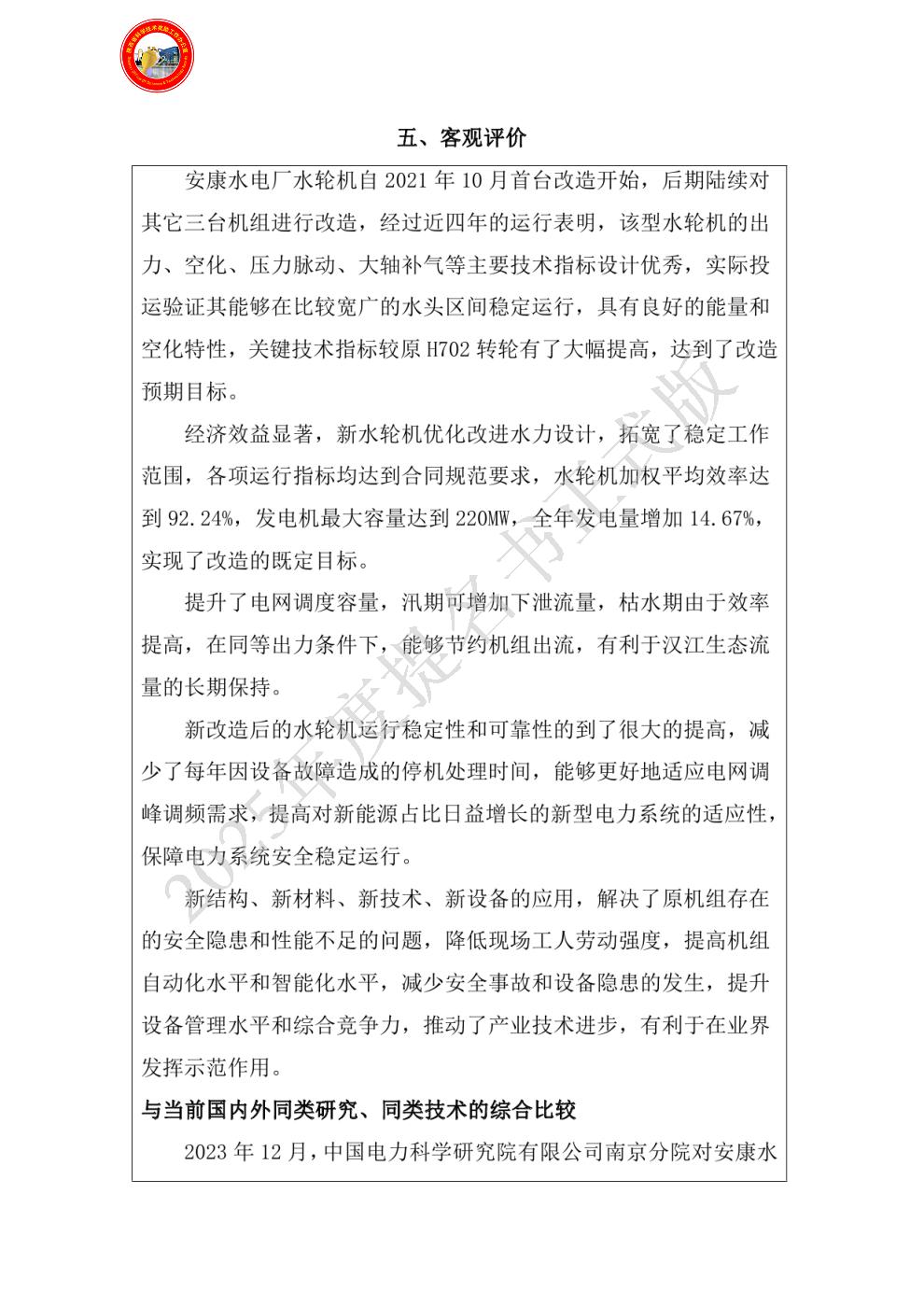 | 主要完成单位及创新推广贡献: | - 单位名称:安康水力发电厂