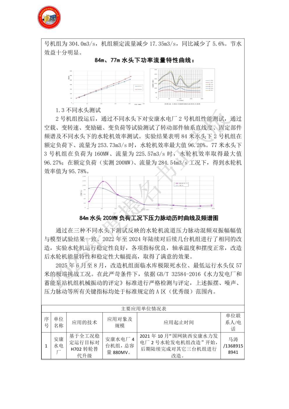 单位贡献:1. 项目前期阶段:提供水轮机改造的初步技术方案,参与可行性研究中的设备性能论证;协助完成立项材料的技术内容编制,提供设计制造相关的行业经验与技术参数;配合招投标工作,制定设备制造技术响应方案,参与技术协议谈判。