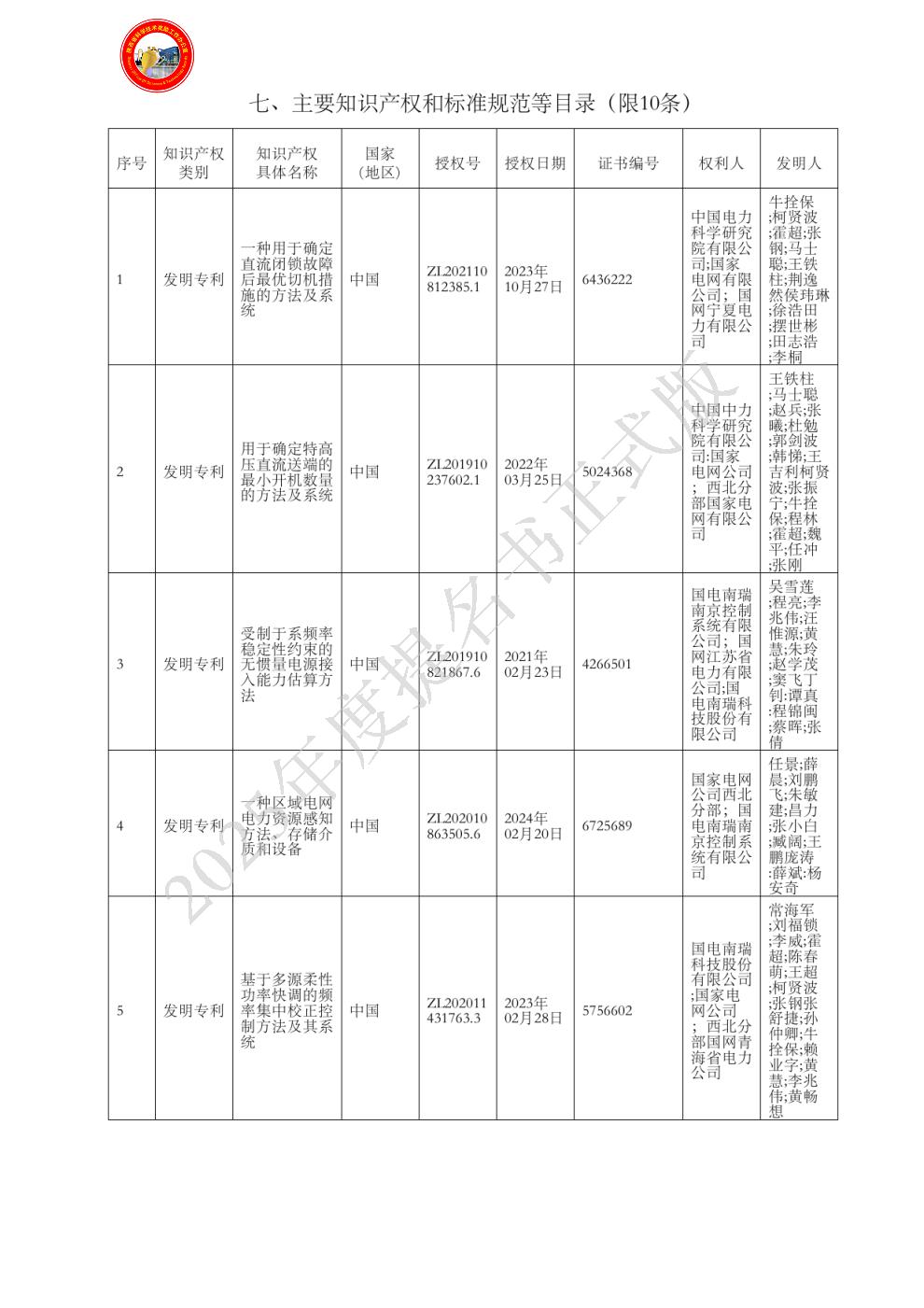 [佐证材料:专利3、6,论文10] 曾获国家科技奖励情况:2022年获国家电网有限公司科技进步奖二等奖