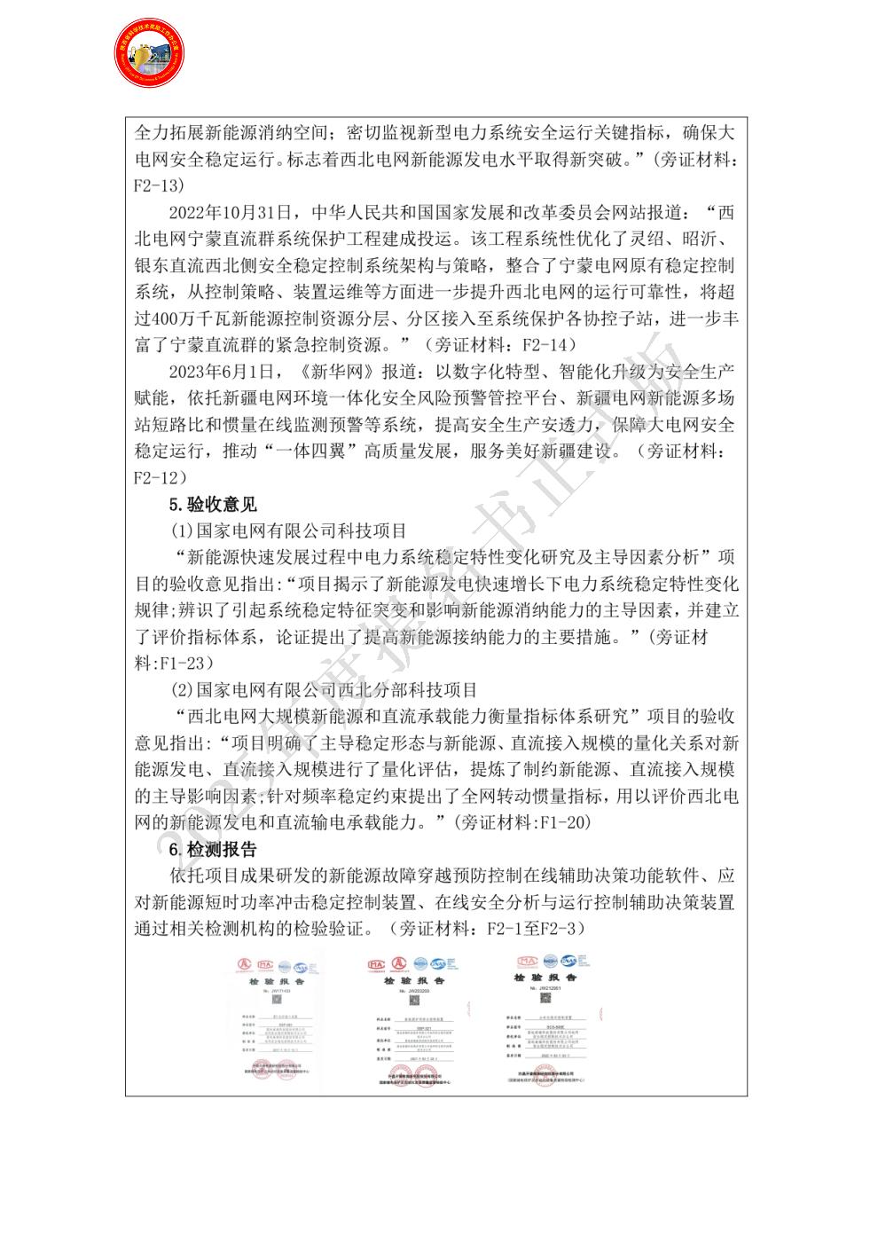 [佐证材料:合同1] 曾获国家科技奖励情况:国家电网有限公司西北分部科技进步奖二等奖 - 姓名:任景