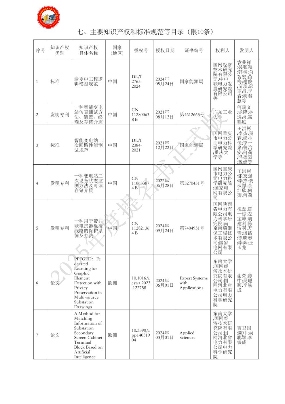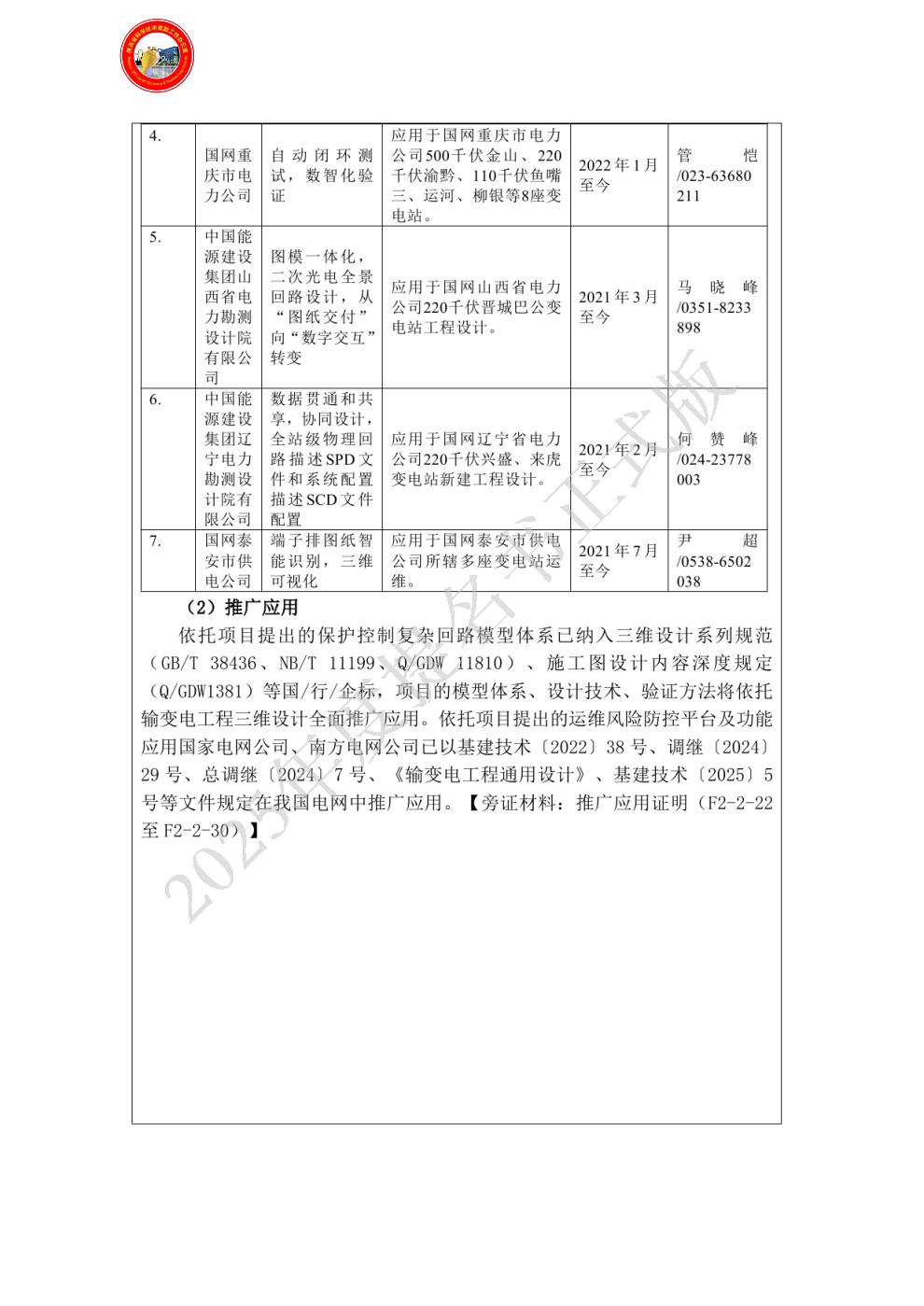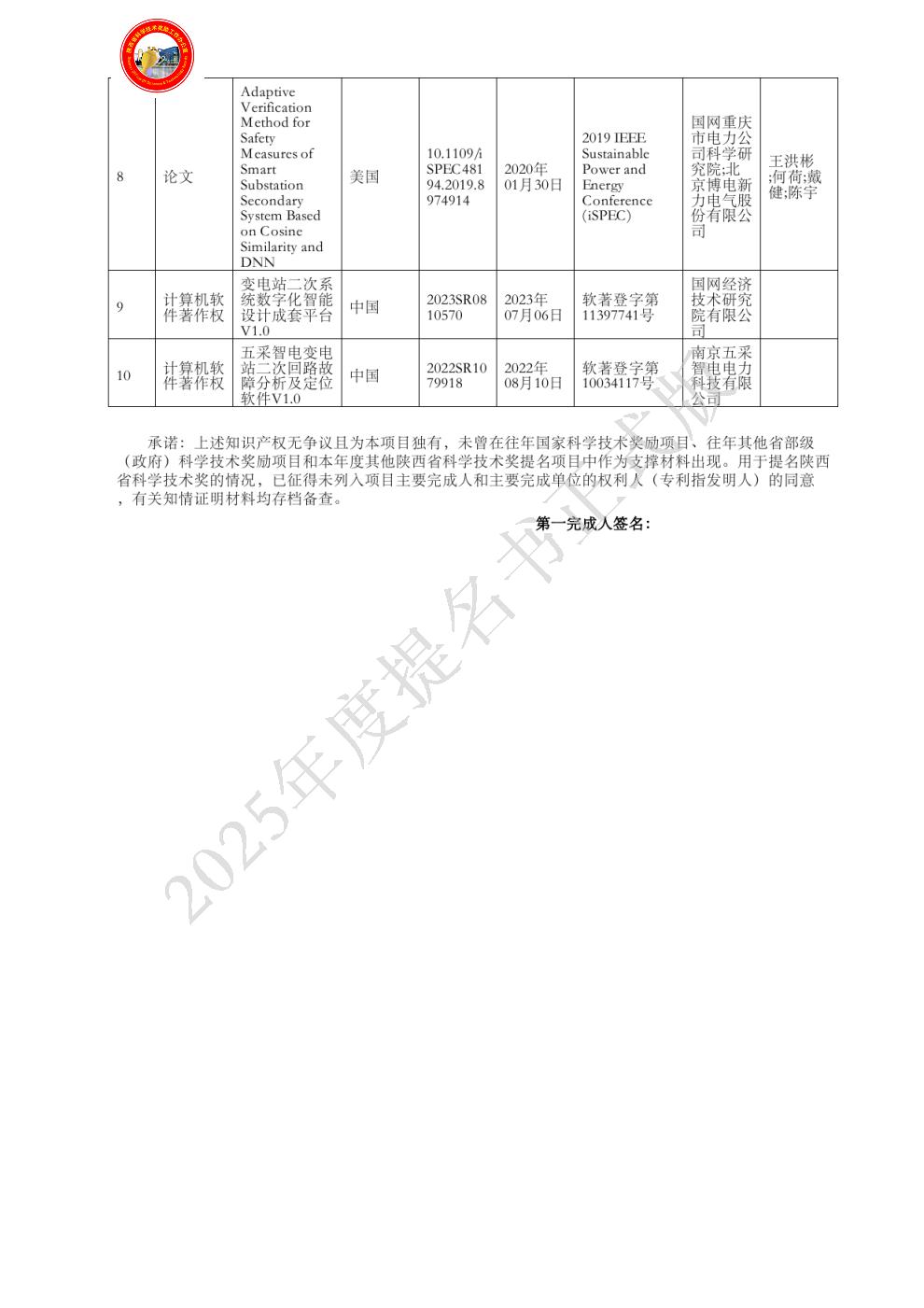 单位贡献:国网重庆市电力公司电力科学研究院作为项目主要完成单位之一,在创新点3和创新点4中做出突出贡献。主要包括: