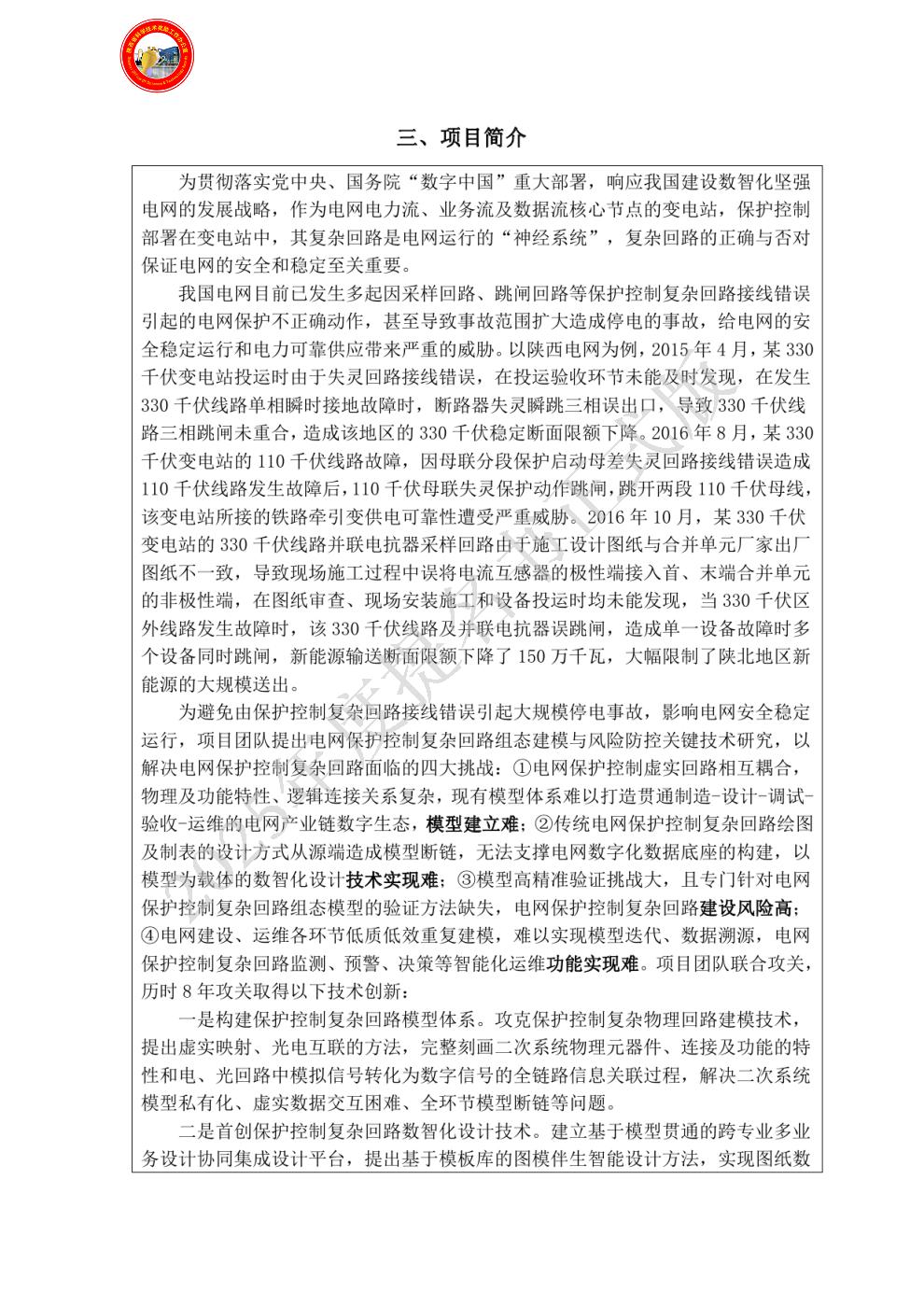 单位贡献:国网陕西省电力有限公司作为项目第一完成单位,负责项目技术路线和总体方案设计,统筹项目的全面研究工作,负责项目整体成果的推广应用,实现了电网保护控制系统监测、预警、决策等智能化运维功能。主要包括: