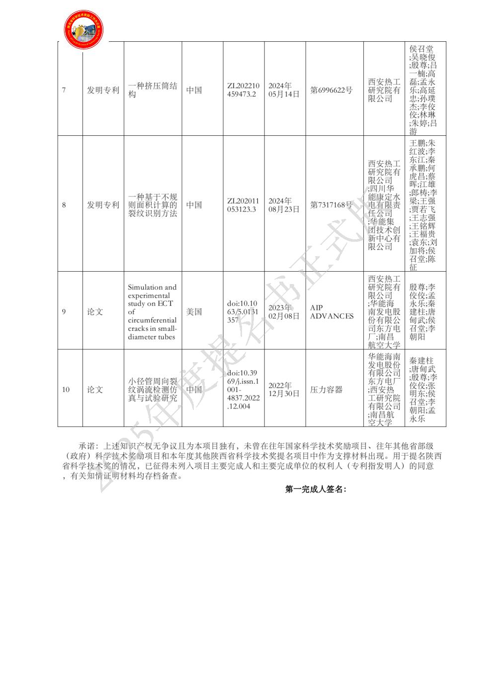 我单位对提名书进行了认真审核,确认材料真实有效,符合陕西省科学技术进步奖授奖条件,提名该项目为陕西省科学技术进步奖三等奖。 |