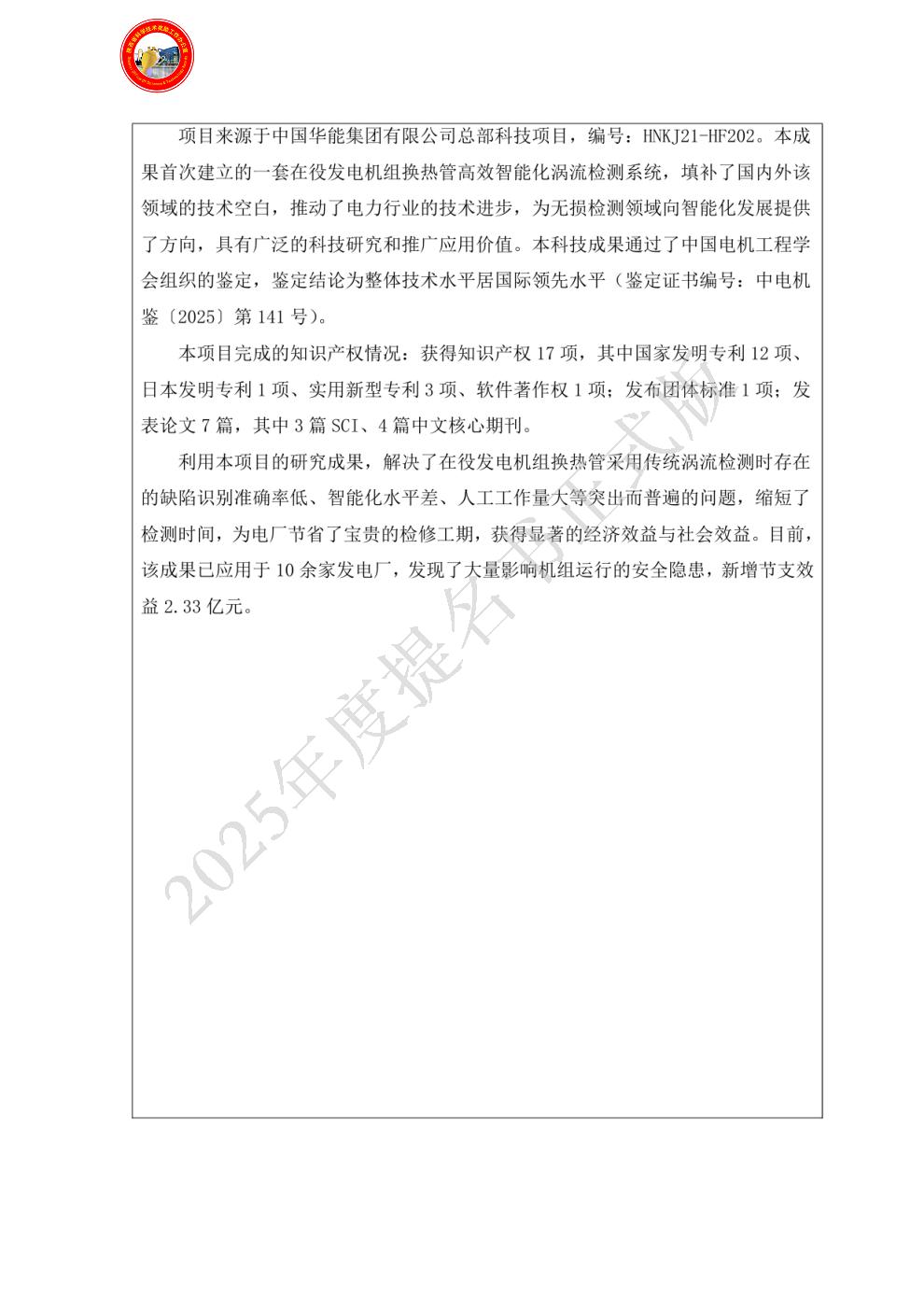 | 提名单位: | 西安热工研究院有限公司 |