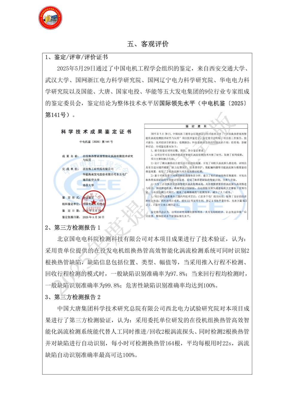 该成果填补了国内外电力行业无损检测领域的技术空白,被中国电机工程学会鉴定为国际领先水平,并在多家电厂成功应用。