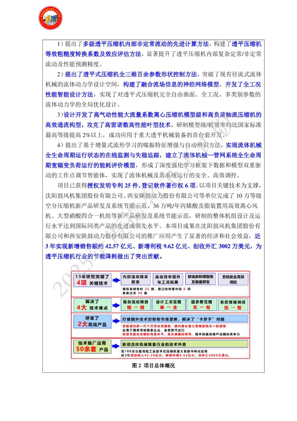 排名:2 行政职务:副总裁、 首席技术官 技术职称:教授级高工 工作单位:沈鼓集团股份有限公司 对本项目技术创造性贡献:1)该项目主要成员,负责项目关键技术成果在完成单位的转化应用等工作,对创新点3和4做出了实质性贡献:基于项目成果主导开发完成了新一代10万等级空分压缩机、连续重整循环氢压缩机组、36万吨/年丙烯酸及脂装置用高效离心风机新产品等,提出了增压压缩机入口导叶调节方法,主导了透平压缩机负荷管网系统高效运行耦合匹配及智能调控技术的工程应用。