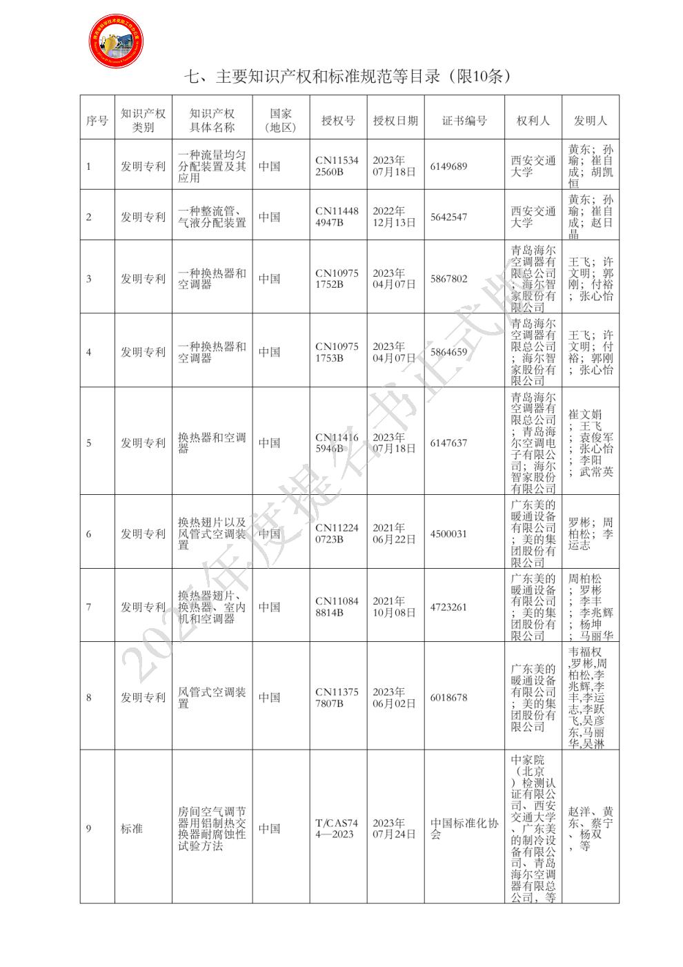 ③2023年中国生产力促进奖一等奖,“宽温域多场景高效多联式空调系统关键技术及产业化”,第2,2023-SCL-CXFZ-1-1002;
