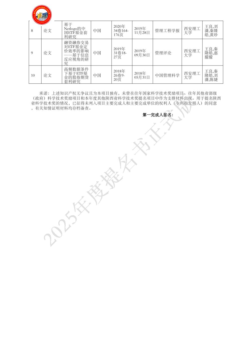 排名:1 行政职务:金融学专业负责人 技术职称:教授 工作单位:西安理工大学 对本项目技术创造性贡献:王良对本项目《重要科学发现》中的第一、二项科学发现做出了创造性贡献。该完成人系统构建了基金经理社会网络的多维测度体系,首次设计并应用了针对性别、学历和地域差异的网络结构分析方法,揭示了网络规模、广度和深度的性别异质性规律,以及硕士与博士学历群体在网络连通性与内部结构上的系统性差异;同时创新性地提出了中国基金经理网络“纺锤形分布”理论模型,并发现了上海、深圳、北京、广州四地基金经理社会网络在整体结构与核心子群形成机制上的地域特征,为后续影响机制研究奠定了核心理论基础。此外,王良是第1~10篇代表性论文的第一作者。 曾获国家科技奖励情况: 2024年,陕西高等学校科学技术研究优秀成果奖,获奖等级:特等奖,获奖项目名称:基金经理的社会网络对证券投资基金羊群行为的影响机制研究,第一完成人。