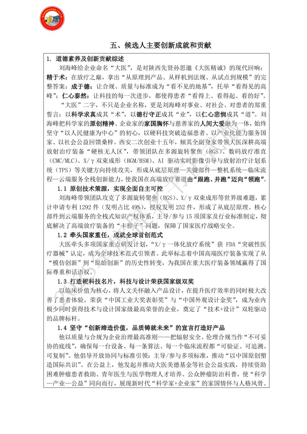 候选人主要创新成就和贡献: