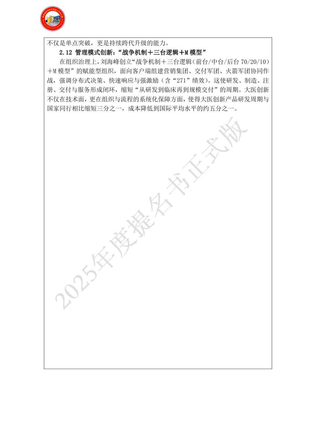 提名单位意见: