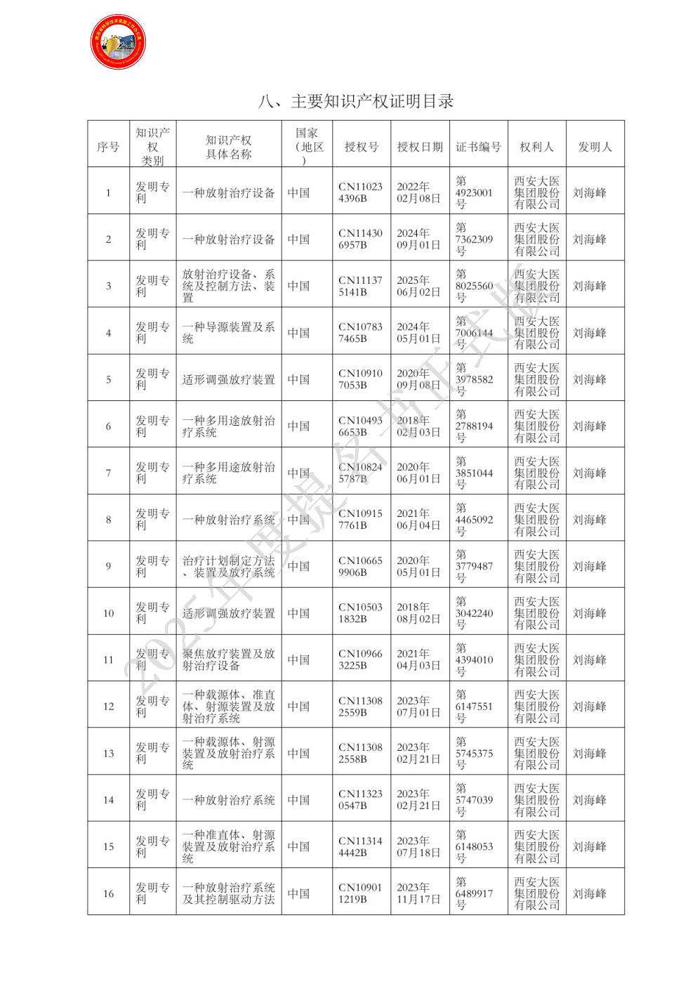 主要知识产权证明目录: