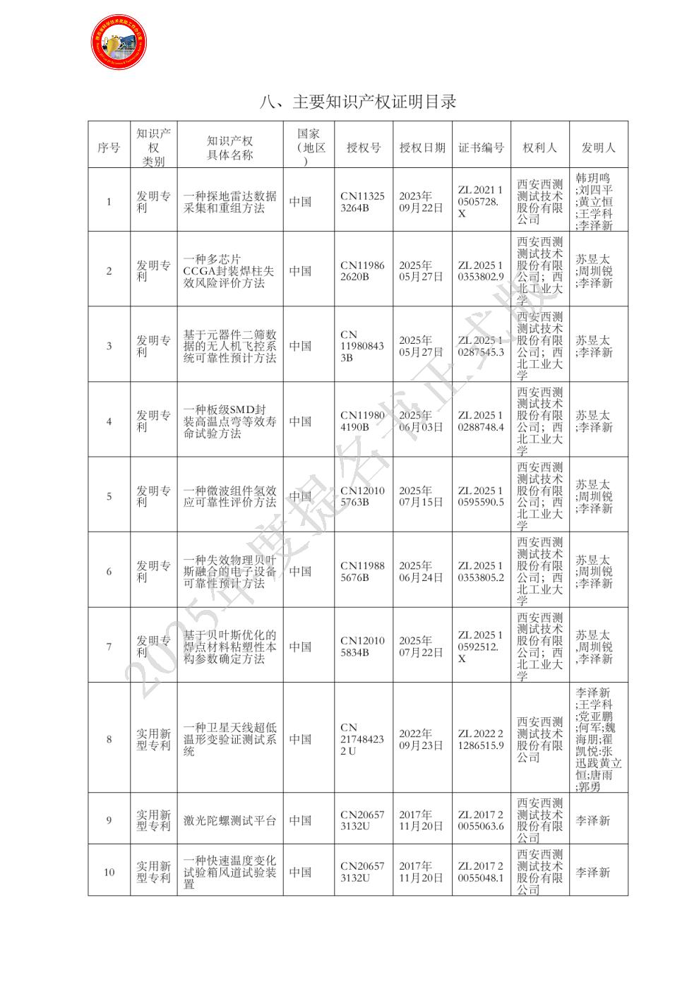 主要知识产权证明目录: