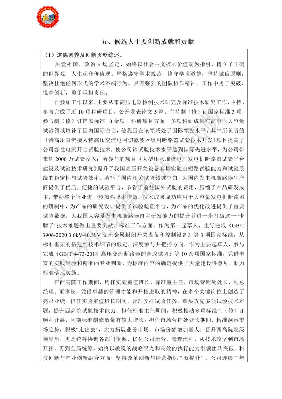 候选人主要创新成就和贡献: