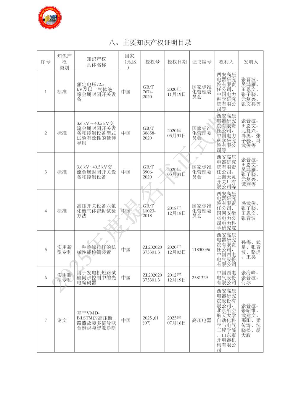 主要知识产权证明目录: