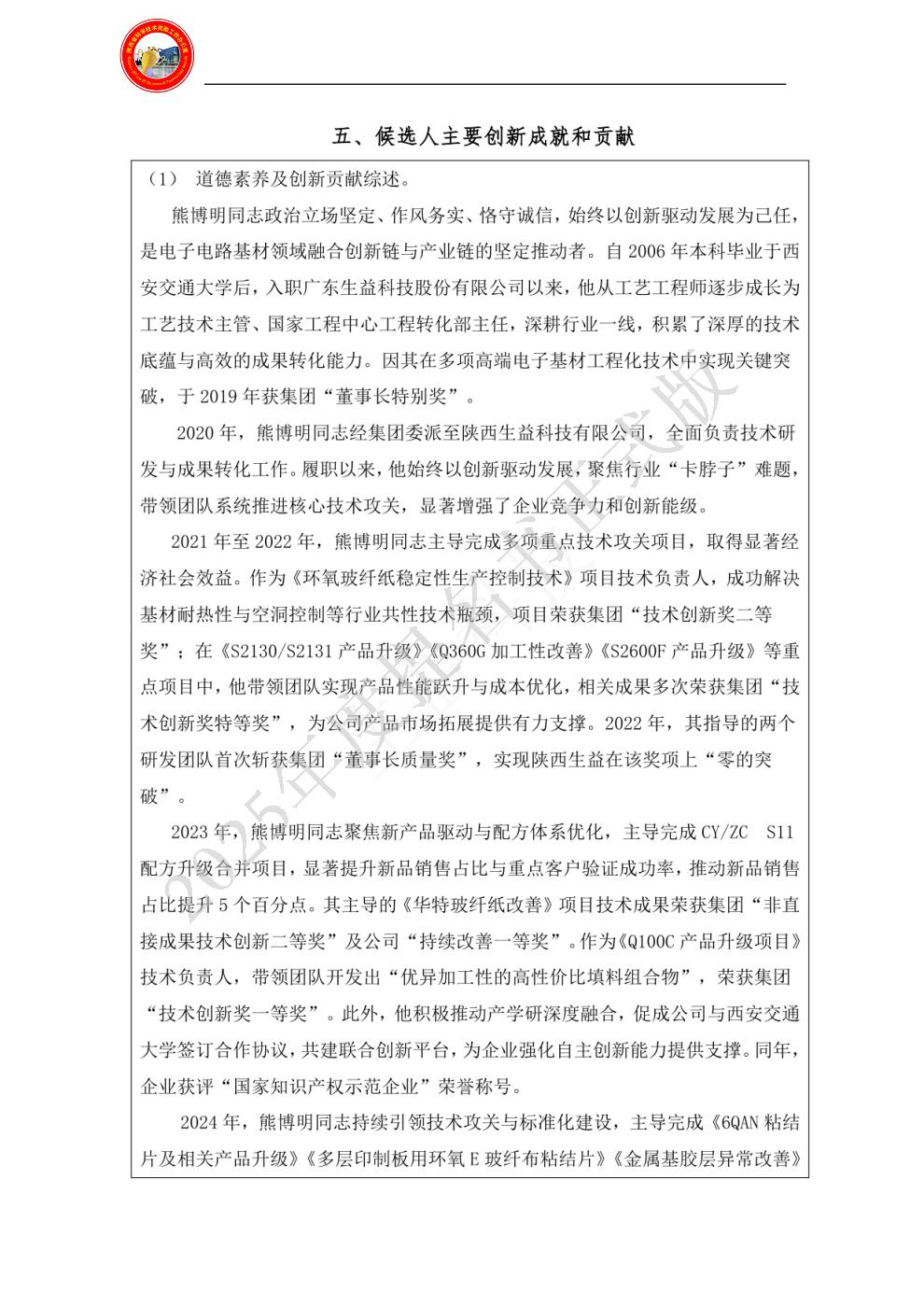 候选人主要创新成就和贡献: