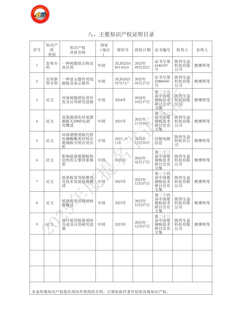 主要知识产权证明目录:
