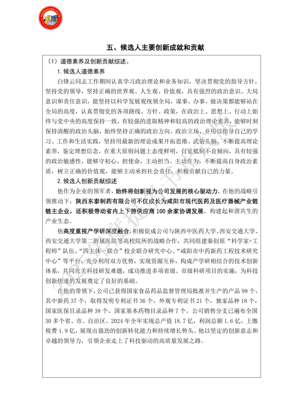 候选人主要创新成就和贡献: