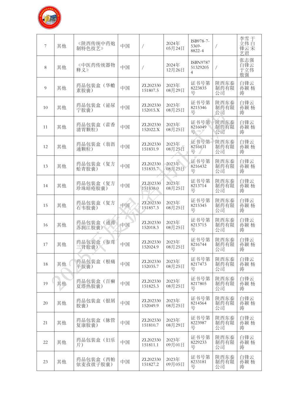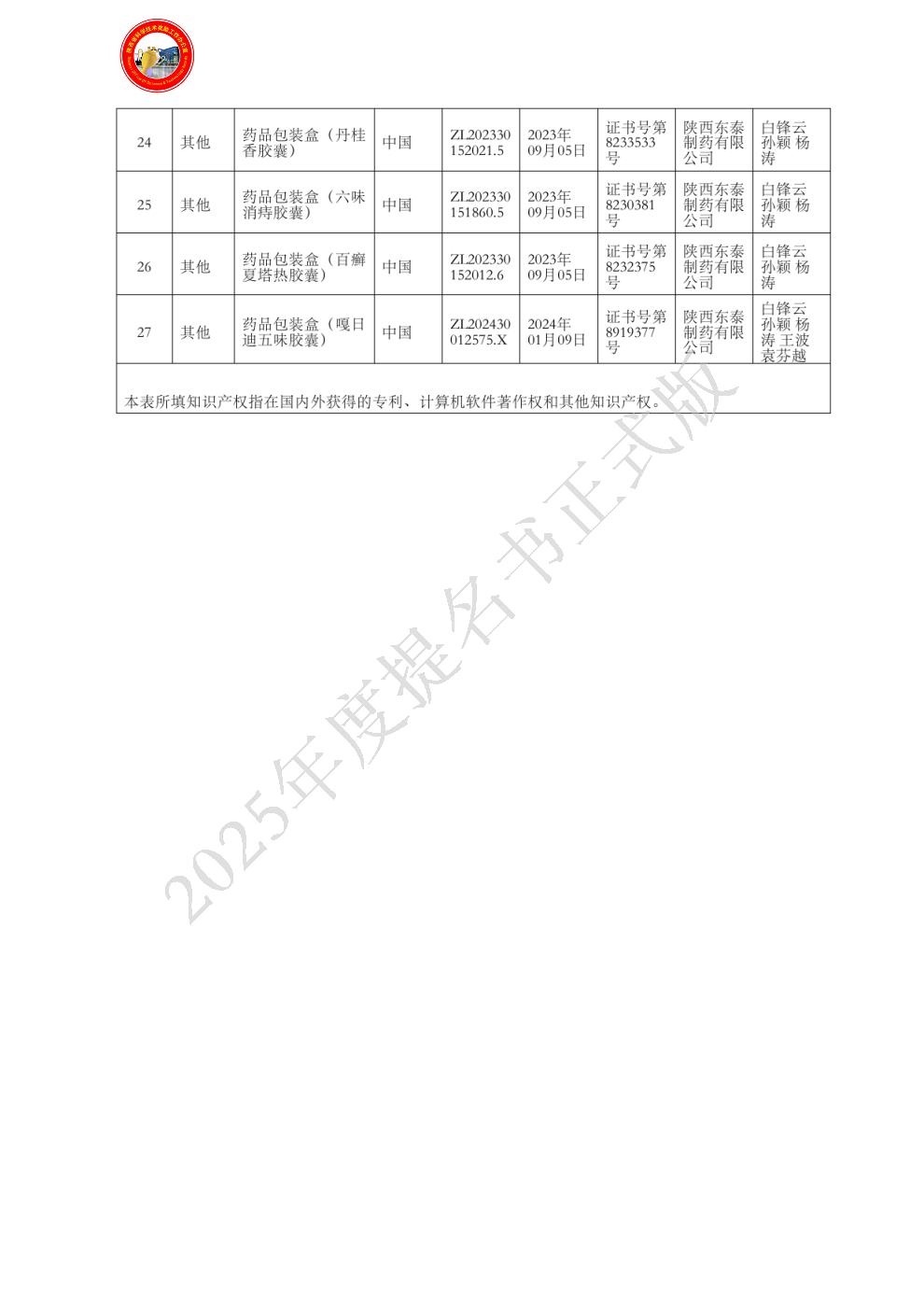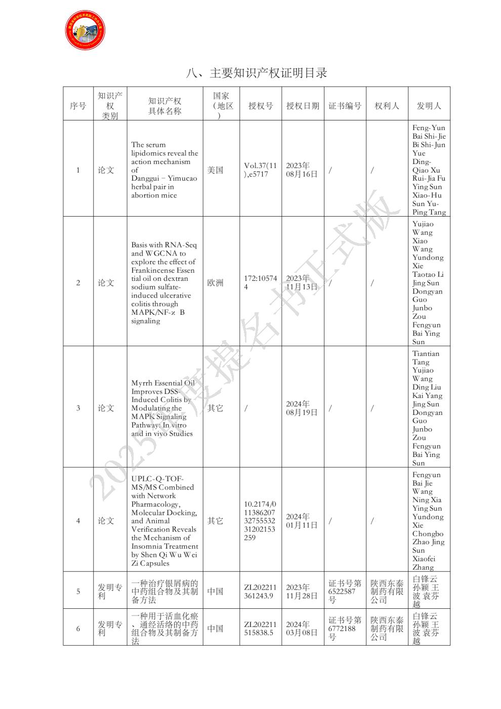 主要知识产权证明目录: