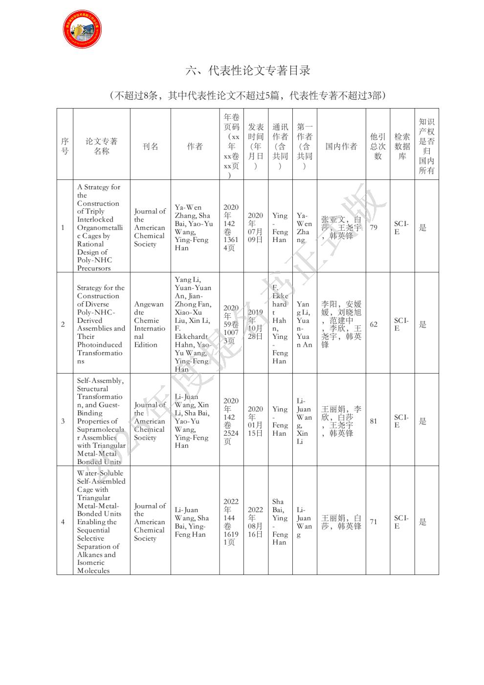 排名:2 行政职务:无 技术职称:副教授 工作单位:西北大学 完成项目时所在单位:西北大学 对本项目主要学术贡献:项目主要完成人,对开发三维机械互锁金属卡宾结构及水溶性金属簇基有机金属体系的构筑策略有创造性贡献,参与完成了发现点一和二的项目研究,是代表性论文1、3和4的主要完成者。