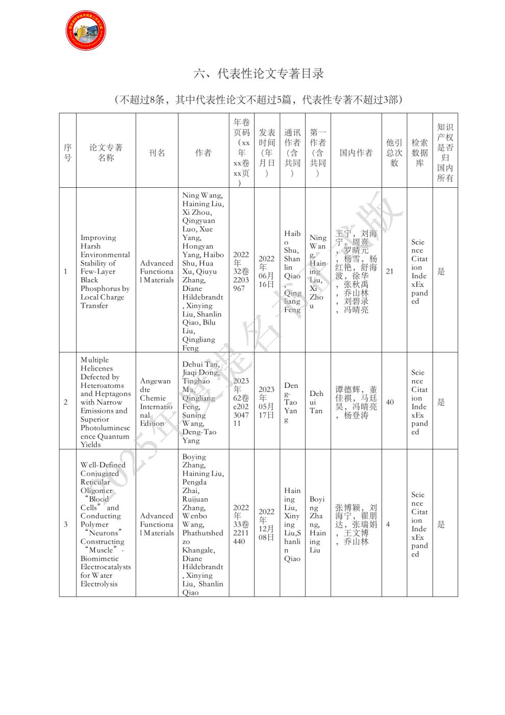 排名:6 行政职务:无 技术职称:教授 工作单位:西北农林科技大学 完成项目时所在单位:西北农林科技大学 对本项目主要学术贡献:主要参与了第一项科技创新成果,提出了基于无氢电化学剥离及界面自组装的黑磷薄膜大面积制备与稳定性控制方法,实现了高质量、均匀的黑磷/二硒化铂异质结阵列的构建;揭示了该肖特基结在高温下抑制载流子散射与复合、增强光生电荷分离效率的作用机制,推动了器件在470 K高温环境下仍保持高响应度与探测率的突破,合作完成代表作5。