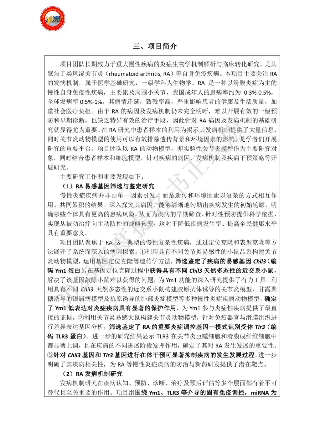 “关节免疫炎症的分子机制”项目团队长期致力于炎症驱动型重大慢性疾病的基础研究,围绕关节免疫炎症的发生发展取得了系统性原创成果。项目通过整合定位克隆与表型克隆策略,系统鉴定了炎症调控网络中的关键基因;并依托遗传同源导入系、基因编辑构建的组织特异性动物模型,结合原代细胞与患者样本,建立了多维度研究体系。研究深入揭示了目标基因在固有免疫激活、代谢重编程与表观遗传调控中的交互作用网络,阐明了炎症失调在类风湿关节炎发生发展中的核心驱动作用。
