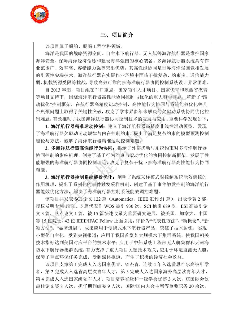 | 评审组: | 工程建设组 | | 项目名称: | 海洋航行器高性能协同控制与优化研究 |