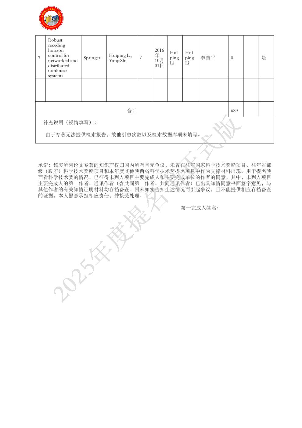 成果材料齐全、规范,无知识产权纠纷,人员排序无争议,符合陕西省自然科学奖提名条件。