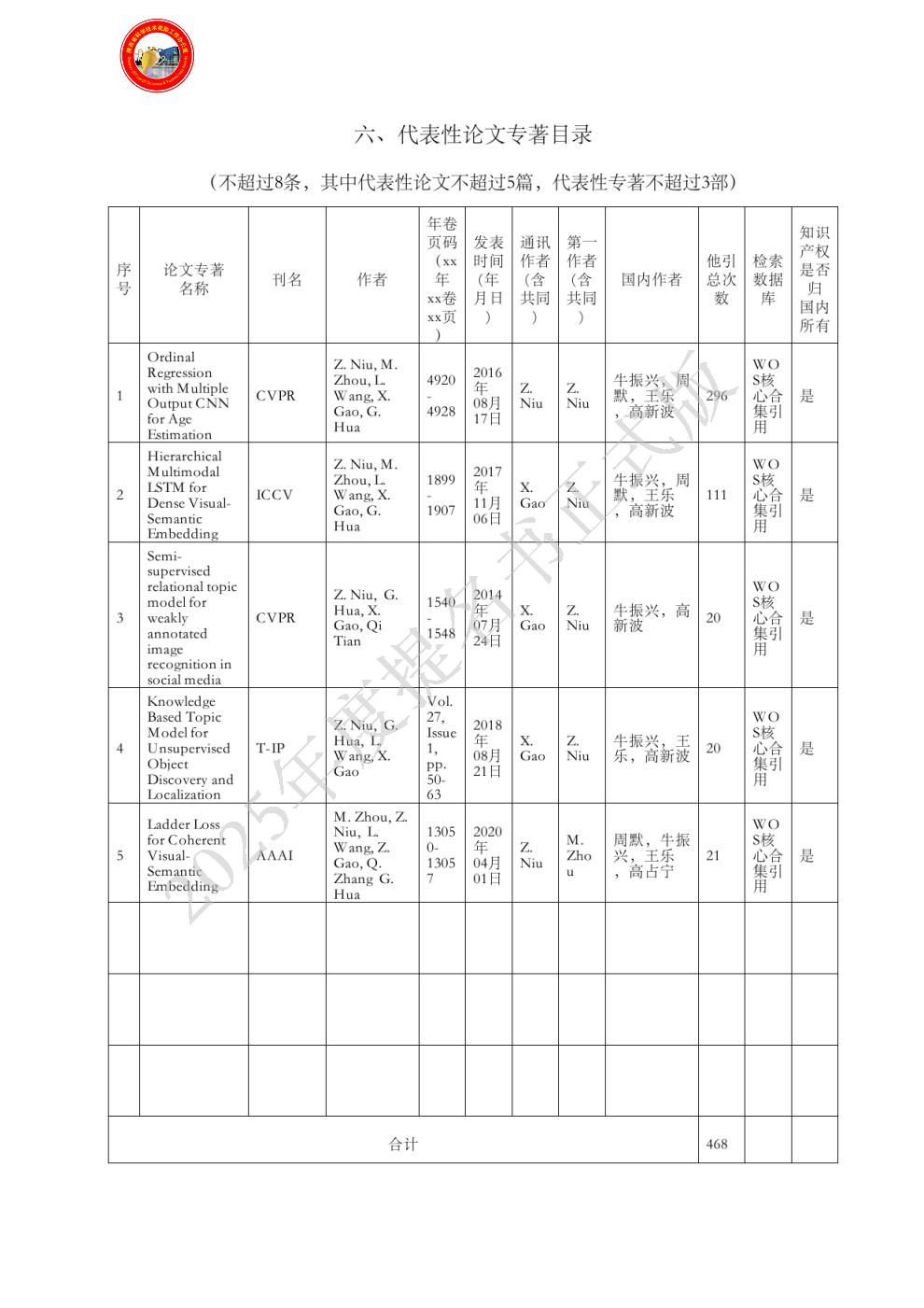 对科学发现:3)多模态层次化图像-文本联合表示与检索;4)面向Long-tail的多模态图文检索;5)基于深度学的排序回归与人脸年龄识别都有贡献。