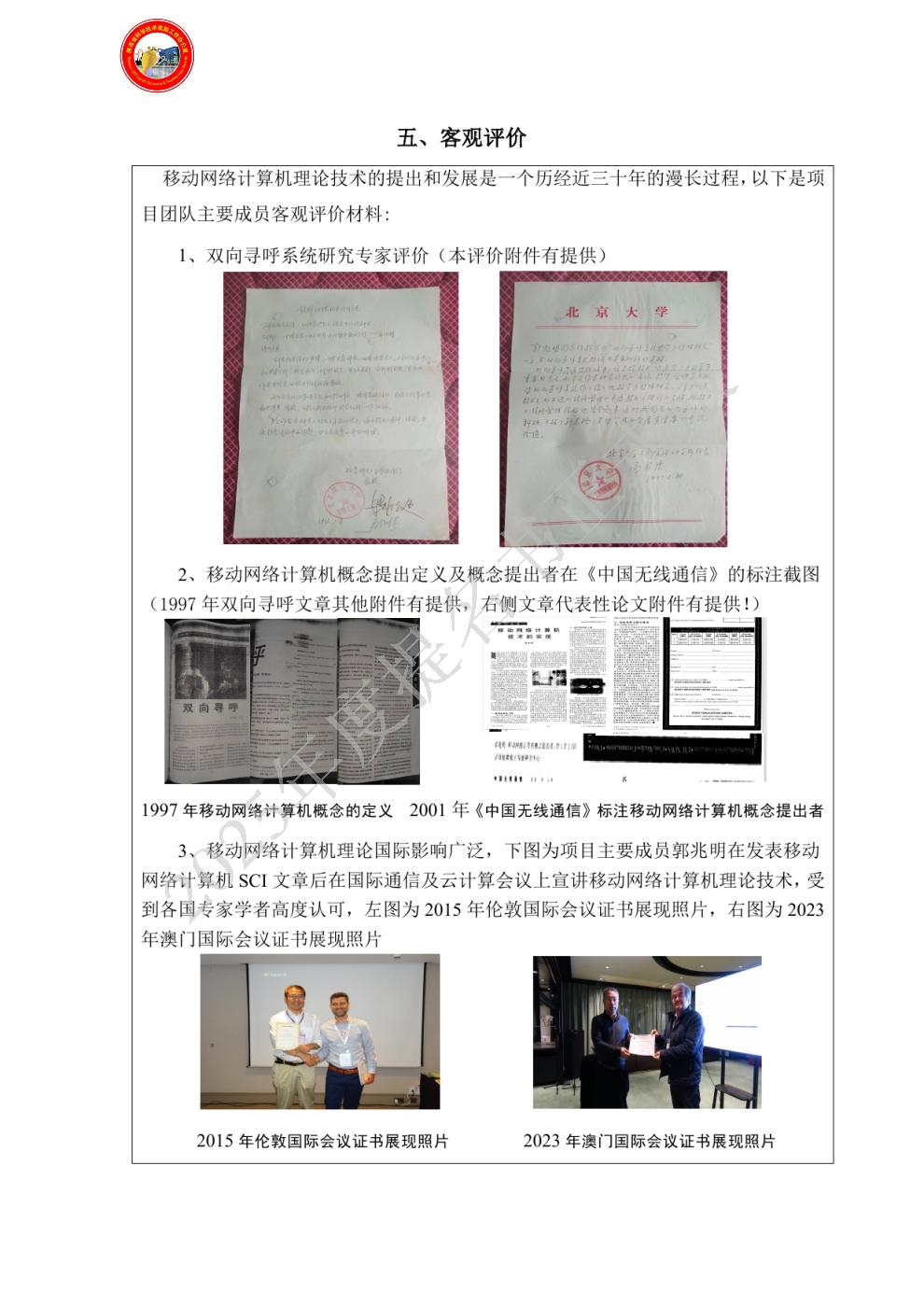 单位贡献:为发展移动网络计算机理论,扩大国际影响提供了平台及项目支持,在移动网络计算机基础研究过程中提供配套技术、设备和人员等,并对该理论的发展起到了组织、管理和协调作用!