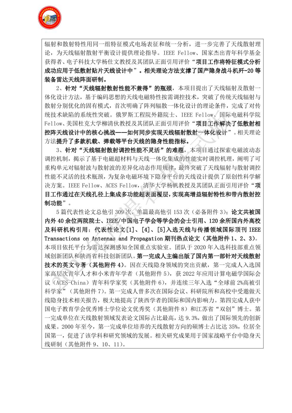 排名:1 行政职务:无 技术职称:教授 工作单位:西安电子科技大学 完成项目时所在单位:西安电子科技大学 对本项目主要学术贡献:系统提出了天线辐射散射综合调控理论与方法,对科学发现1、2、3均有创造性贡献,是代表性论文1、3、4、5的通讯作者(必备附件1-1、1-3、1-4、1-5)