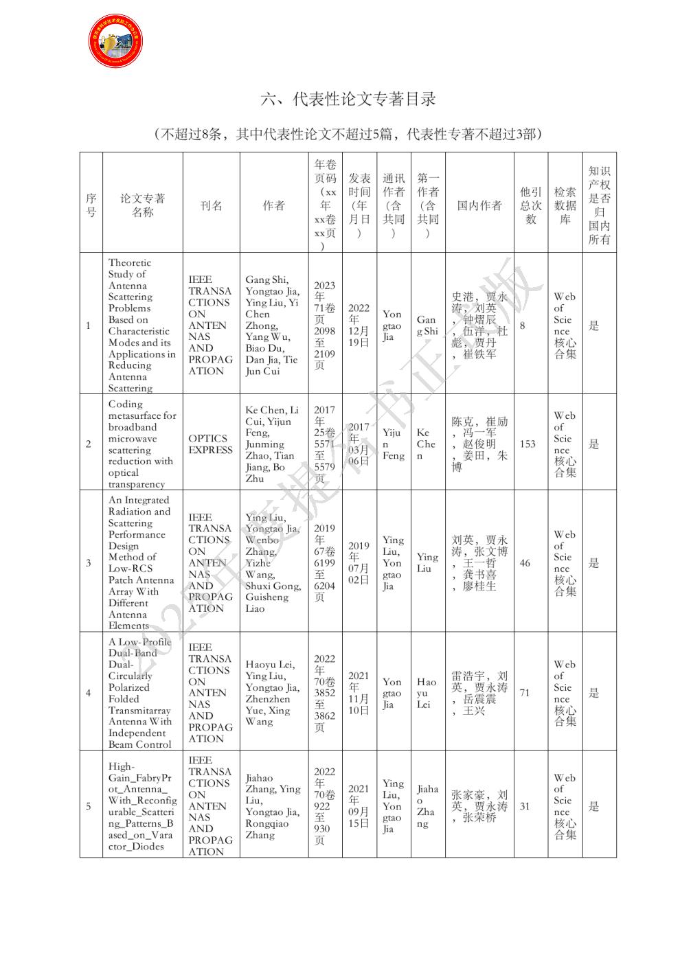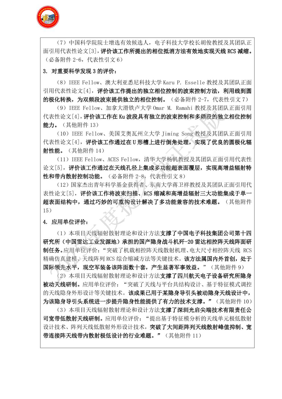 排名:6 行政职务:710071 技术职称:教授 工作单位:西安电子科技大学 完成项目时所在单位:西安电子科技大学 对本项目主要学术贡献:阐明了可重构单元对辐射波与散射波的差异化动态作用规律,对科学发现3具有创造性贡献,是代表性论文4的共同作者(必备附件1-4)。